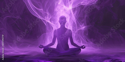 Steady Purple Aura: A person sits in lotus position, their body surrounded by a soothing purple glow.