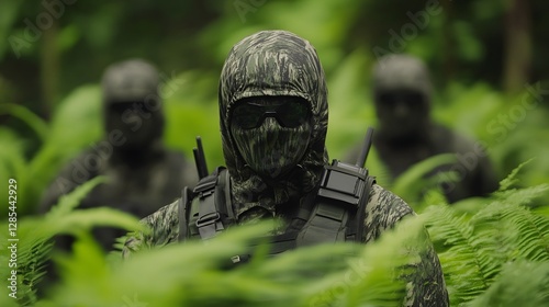 Stealthy Soldiers Concealed in Verdant Forest during Covert Military