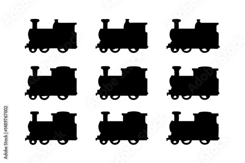 Steam locomotive train silhouette set vector illustration
