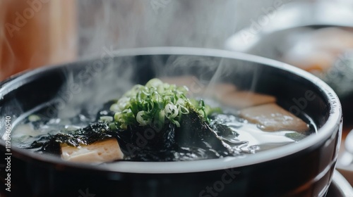 Steaming Bowl of Delicious Miso Soup with Tofu and Seaweed
