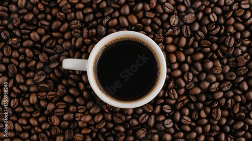 Steaming cup of coffee perched atop a mound of aromatic coffee beans