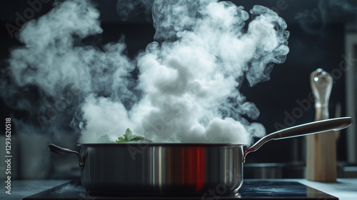Steaming food in modern stainless steel pot kitchen cooking hot meal home lunch image style dinner