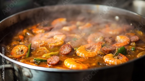Steaming Hot Cajun Shrimp Gumbo in a Large Pot