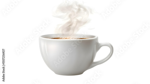 Steaming Hot Cup of Coffee in White Ceramic Mug Isolated on white background