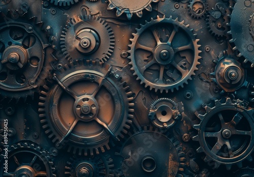 Steampunk gears background. Mechanical wheel with copyspace. Grunge cogwheel detail texture. Retro industrial mechanism. Abstract clockwork pattern. Vintage rusty cog background