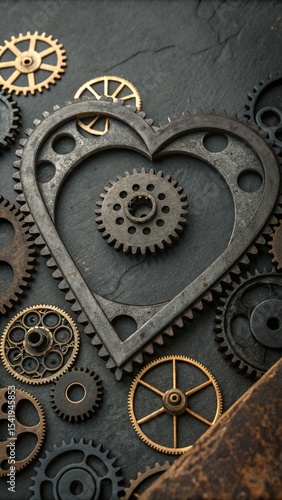Steampunk Heart Made of Gears and Cogs on a Textured Background