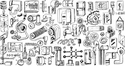 Steampunk Machine Parts Doodle: Whimsical Engineering Sketch