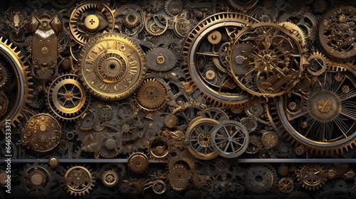 steampunk, pattern, old, metal, art, design, architecture, vintage, detail, wall, antique, ancient, decoration, texture, clock, wood, gold, ornament, religion, thai, flower, temple, generative, ai