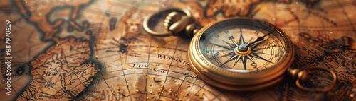 Steampunk Pocket Watch with Compass and Engraved Map in Sepia Tones - Intricate Detailed Design Digital Illustration