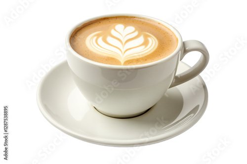 Steamy latte with fern latte art in transparent mug. Isolated on transparent background. Ideal for cafe menus, drink promotions, and food blogs.