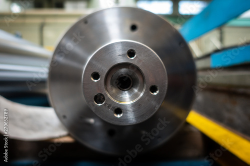 Steel Cylinder Milling Equipment Closeup Hub Coupling Screw Holes Stainless