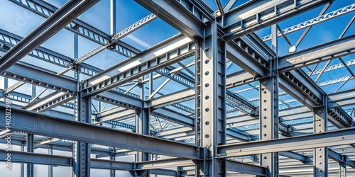 Steel Framework Construction A Detailed View of Interlocking Beams and Supports Under a Clear Sky