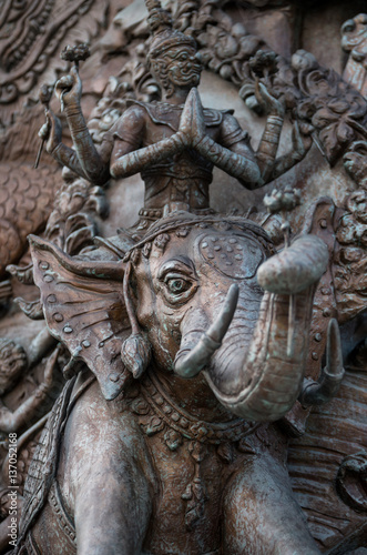 steel mural of Wat Traimit, Bangkok, Thailand,public domain