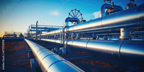 steel pipe equipment, factory turbine line, Industrial petrochemical transport system. Concept for sustainable hydrogen production