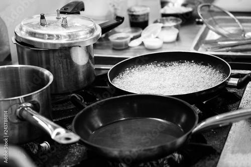 Steel pots, Stainless steel kitchenware Black & White, Utensils for cooking