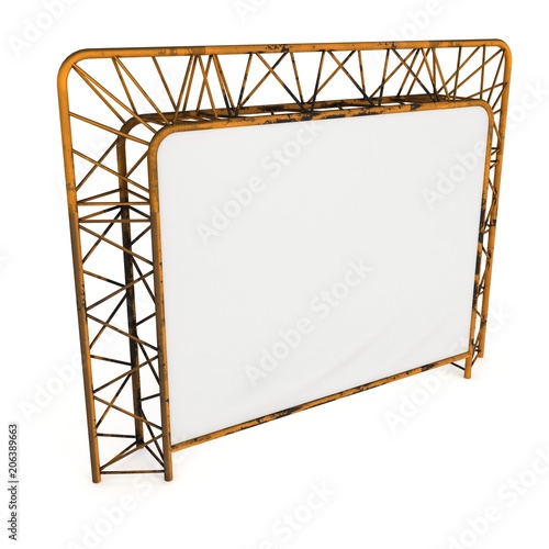 Steel truss girder element banner construction. 3d render press wall isolated on white