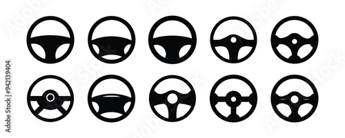 Steering wheel car flat icon set isolated on a white background. Vector element