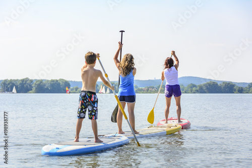 Stehpaddel-Tour auf dem See im Sommer