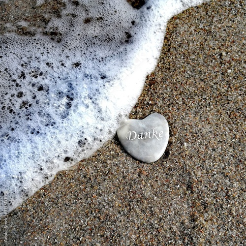 Stein Herz im Sand am Strand Meer Wasser wird angespült