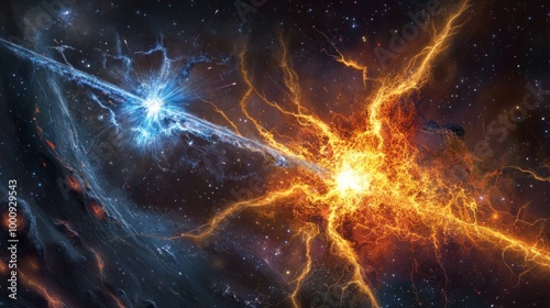 Stellar Explosion Unleashes Cosmic Particles - A supernova, the cataclysmic death of a massive star, ejects high-energy particles into the cosmos.