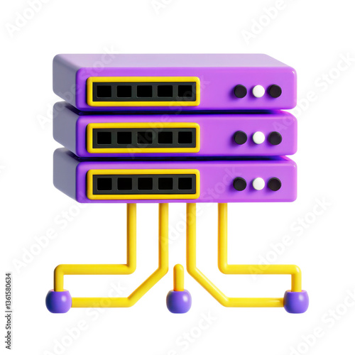 STEM Education 3D illustration concept. Colorful 3D server with purple casing and yellow connectors.