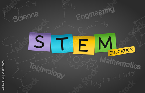 STEM Education Post It Notes Concept Background. Science Technology Engineering Mathematics.