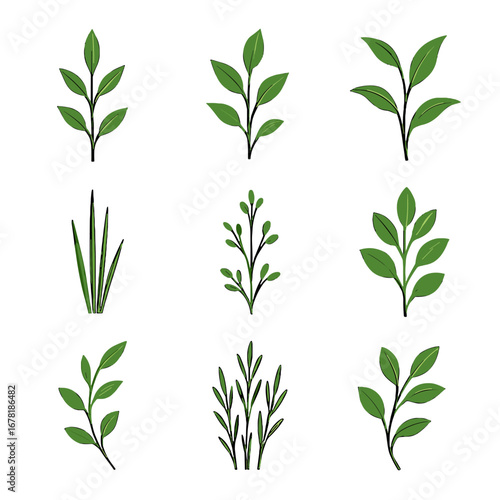 Stems thin upward vector stalks shoots icon grid botanical plant clusters leafy
