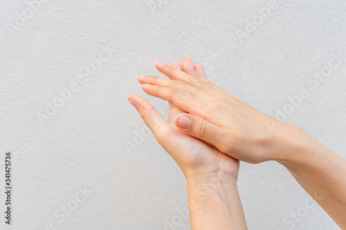 Step 1 correct procedure for hand washing.and prevent the spread of germs and bacteria and avoid infections corona virus. Hygiene concept