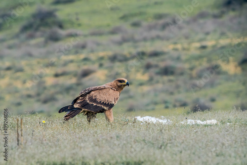 Steppe Eagle (Aquila nipalensis) feeds on carrion in the foothills of Caucasus, Republic of Dagestan