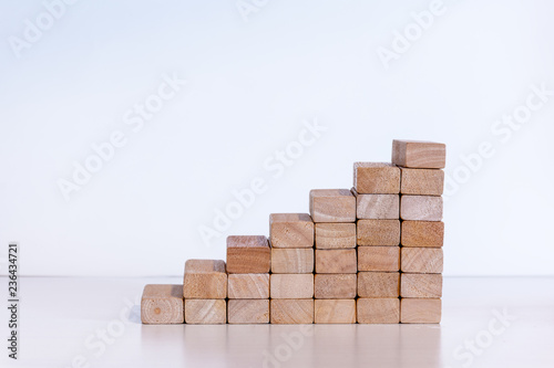 Steps on a stairs made of wooden blocks