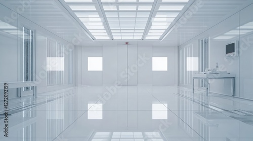 Sterile Corridor: A Modern, Pristine White Interior Space