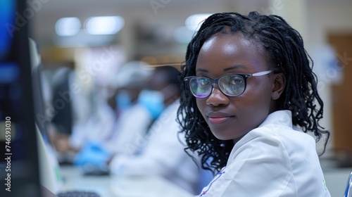 Sterile environment of the laboratory, a dedicated female scientist conducts research, delving into the intricate realms of biotechnology and biochemistry