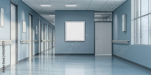 Sterile Hospital Corridor Interior Design Mockup