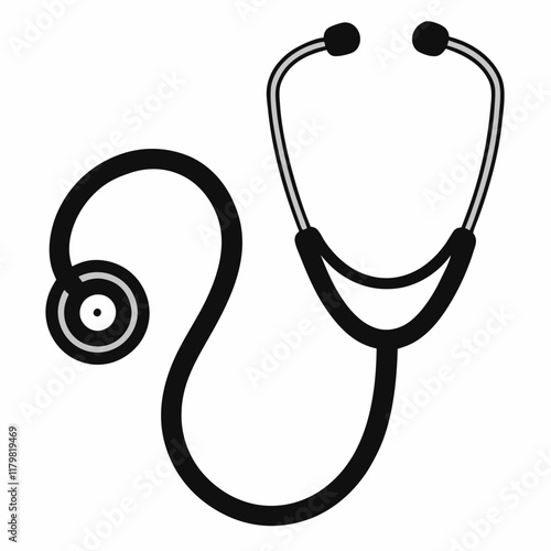 stethoscope Icon vector art illustration black color, Medical Icon Black silhouette