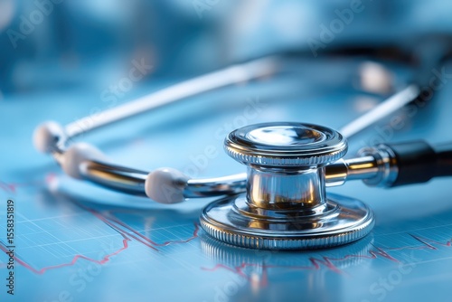 Stethoscope on blue background for medical diagnosis and examination in healthcare setting