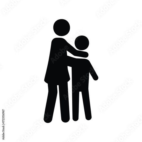 Stick figure illustration depicting a mother hugging her child, family embrace
