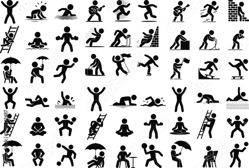 Stick Figure Man Icon Silhouette Set Minimal Human Stick Figures Vector Silhouette Collection