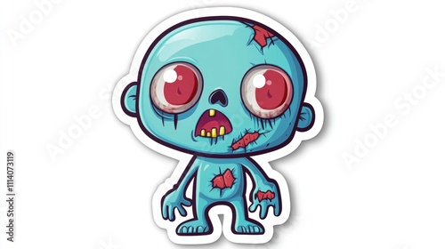 Sticker design of a cute halloween Zombie, on a white background, in a vector illustration style, using simple shapes, in the cute style, featuring a cute character, with a white border.