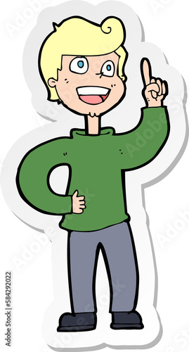 sticker of a cartoon boy with great idea