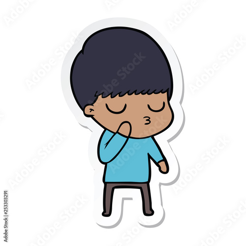 sticker of a cartoon calm boy
