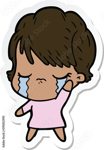 sticker of a cartoon woman crying