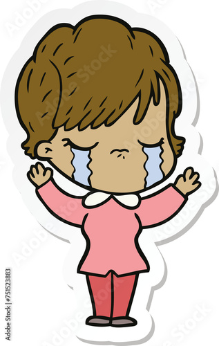 sticker of a cartoon woman crying