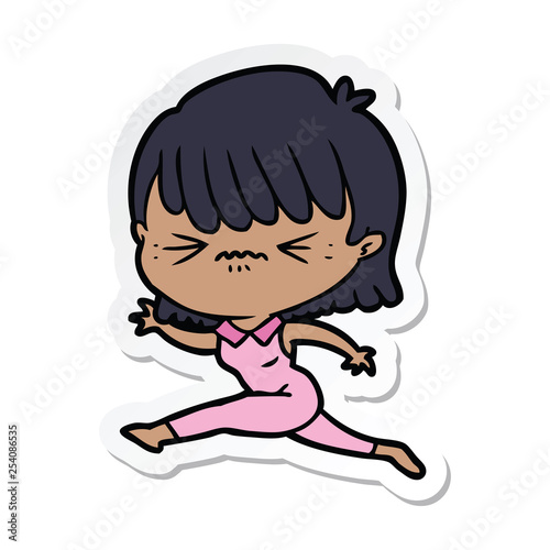 sticker of a cartoon woman jumping