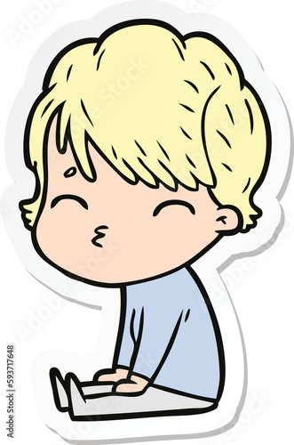 sticker of a cartoon woman thinking