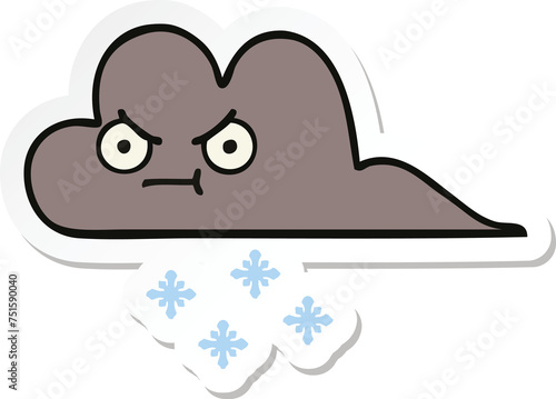 sticker of a cute cartoon storm snow cloud