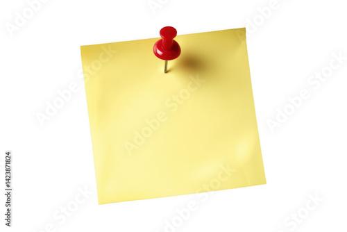 Sticker of a yellow sticky note with a red push pin, on a white background, png