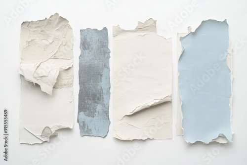 Sticker with ripped paper, journal collage element set, transparent background in blue