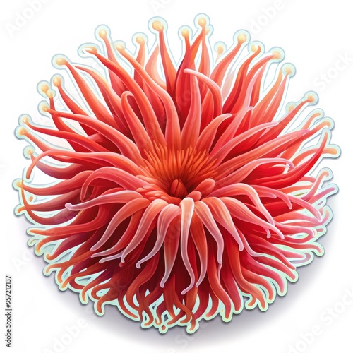 Stickered Sea Anemone Vibrant Red and White Tentacles, Marine Life, Underwater Beauty, Coral Reef, Sea Anemone, Coral, Underwater