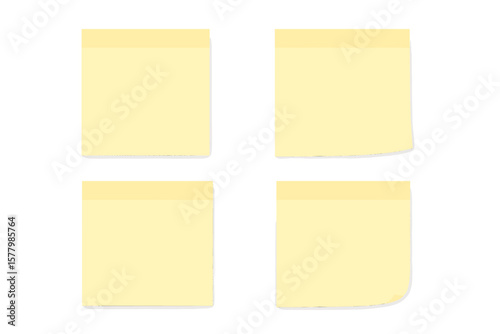 Sticky Notes Set Collection. Isolated Yellow Memo Pads. Realistic Blank Sticky Paper Sheets. Square Adhesive Notes Mockup. Office Stationery Design. Transparent PNG Vector Illustration.