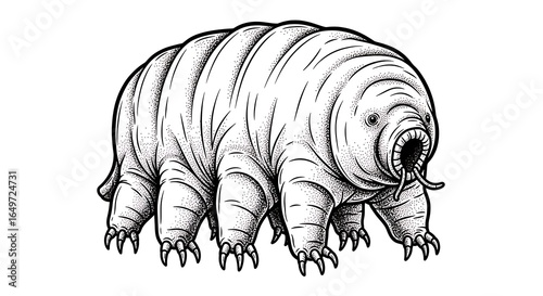 Stippled Water Bear Illustration, Open Mouth, Claws